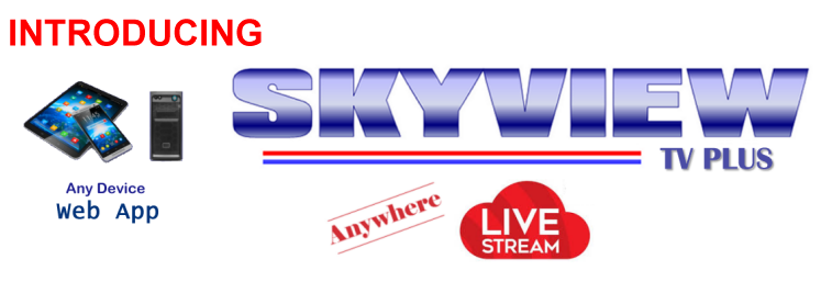 SkyView Television is pleased to announce the launch of our new TV PLUS Live Anywhere Streaming Service. As a SkyView satellite subscriber you now get access to dozens of more channels for free. Get channels back that have left C band, many not available on C band, and more. We offer Variety, Sports, News, Weather, Classic TV, Westerns, Movies, Music, and more all for no extra cost. Watch on your device of choice. Computer, Smart Phone, Tablet, etc with our Anywhere LIVE TV Web App.